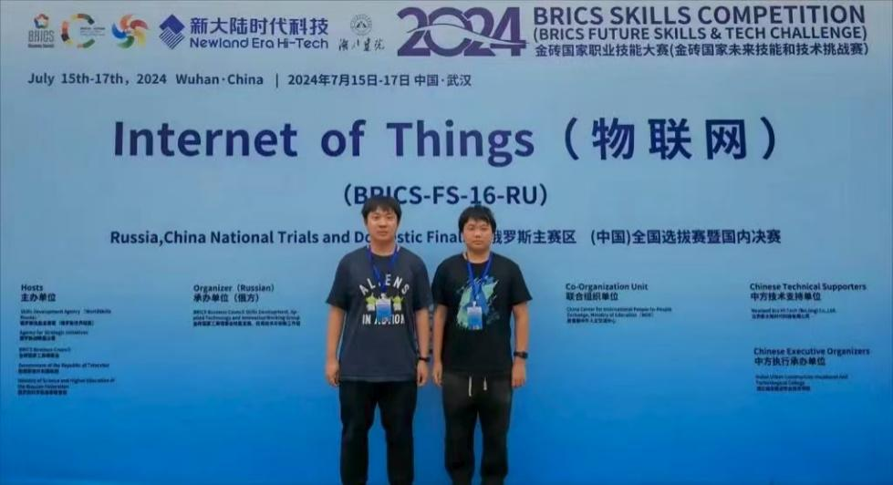 随后,徐东升在金砖国家技能大赛物联网赛项中,斩获国赛一等奖,赢得代表中国赴俄参赛资格。他主动研究国际技术标准,调整设备参数、优化解决方案,积极适应海外比赛环境。最终在俄罗斯主赛区,他沉着应对、稳定发挥,获得中国组银牌。