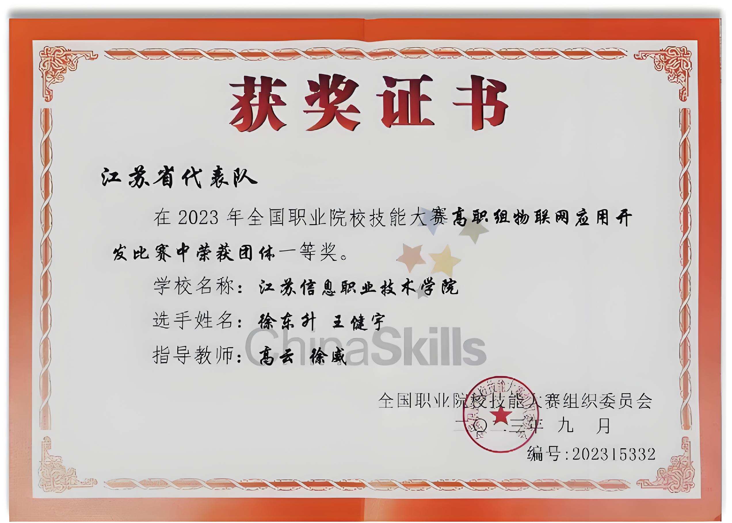 备赛期间,徐东升每日坚持数小时高强度训练:反复校正接线、调试设备、优化通信协议和代码。最终,他与团队一举夺得江苏省职业院校技能大赛物联网赛项一等奖。